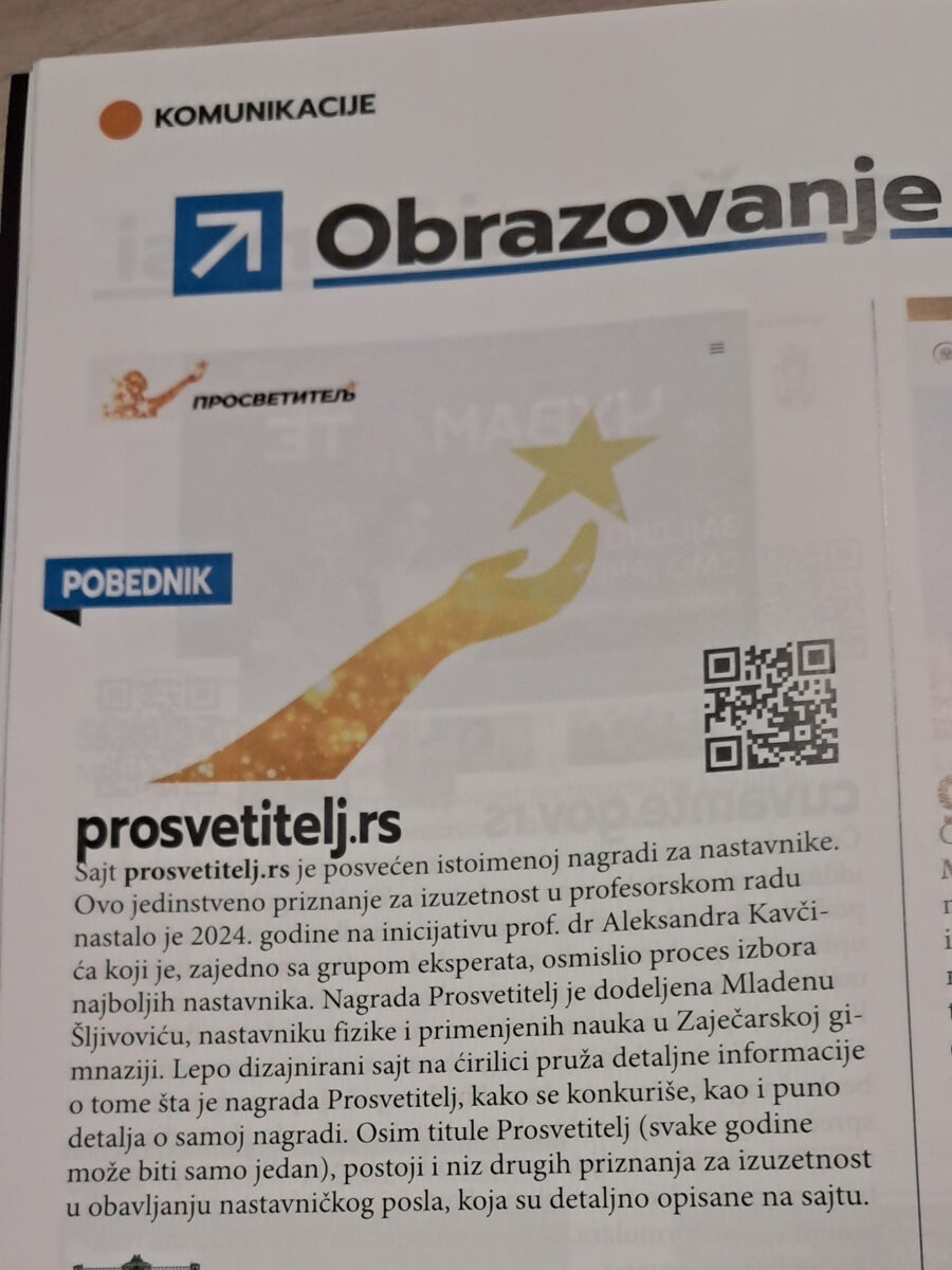 📢 Ако сте наставник који помера границе у образовању, пријавите се за награду Просветитељ! Све информације о пријави пронађите на 👉 prosvetitelj.rs